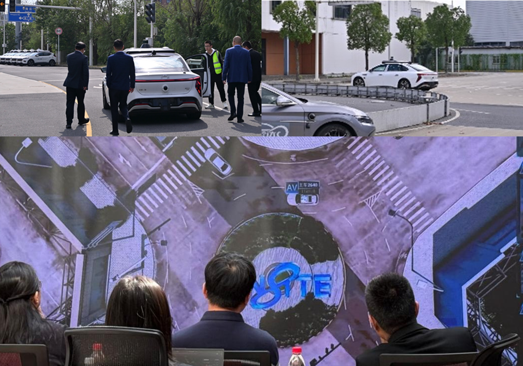 图5 专家组通过指挥中心观摩与实车体验同步参与自主式交通系统虚实融合联动测试