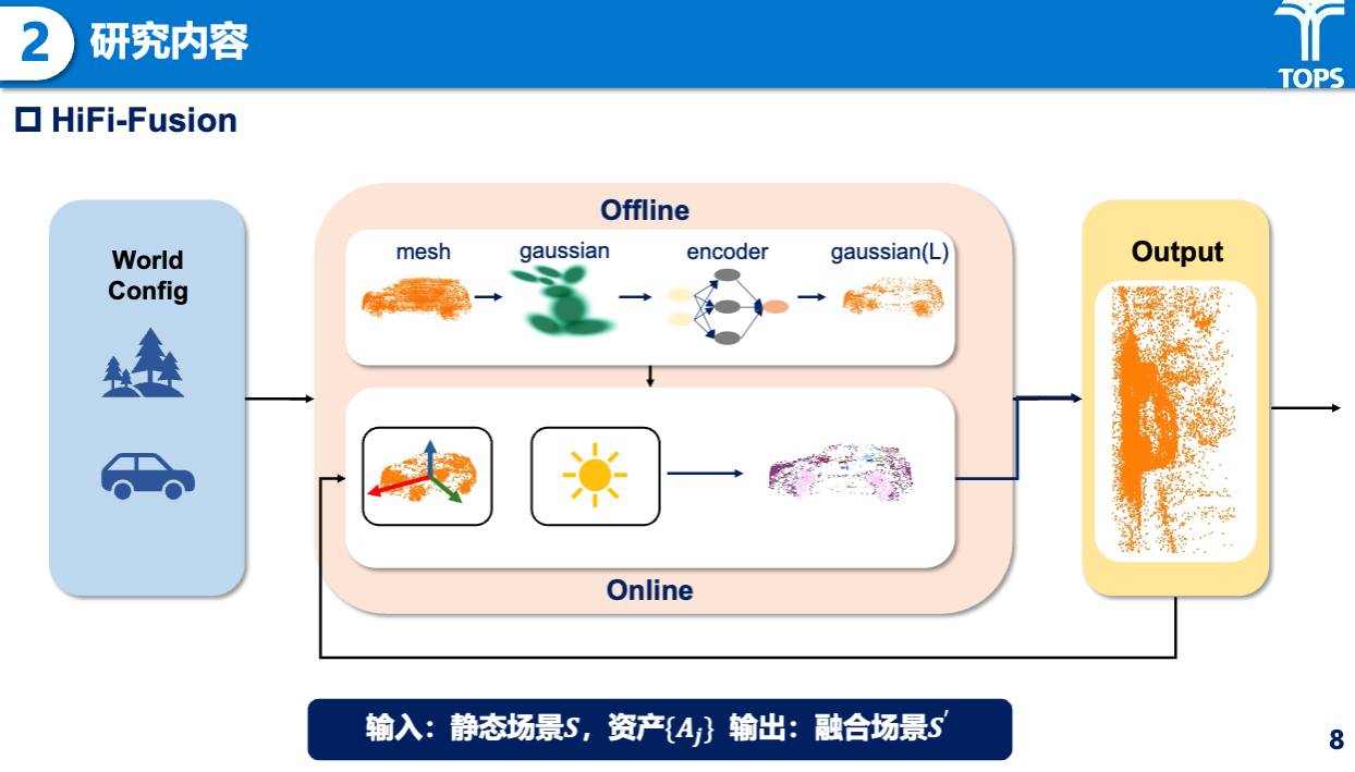 在技术路线方面,李思营提出了一种场景生成框架HiFi-Fusion,基于3DGS实现可控多车交互场景生成,该框架包括离线资产压缩和视觉匹配两个模块。针对离线资产压缩模块,研究在保证视觉质量的前提下,最小化高斯点的数量,从而实现动态资产压缩。针对视觉匹配模块,研究从地面高度估计和光影估计两个方面对视觉匹配进行优化改进。