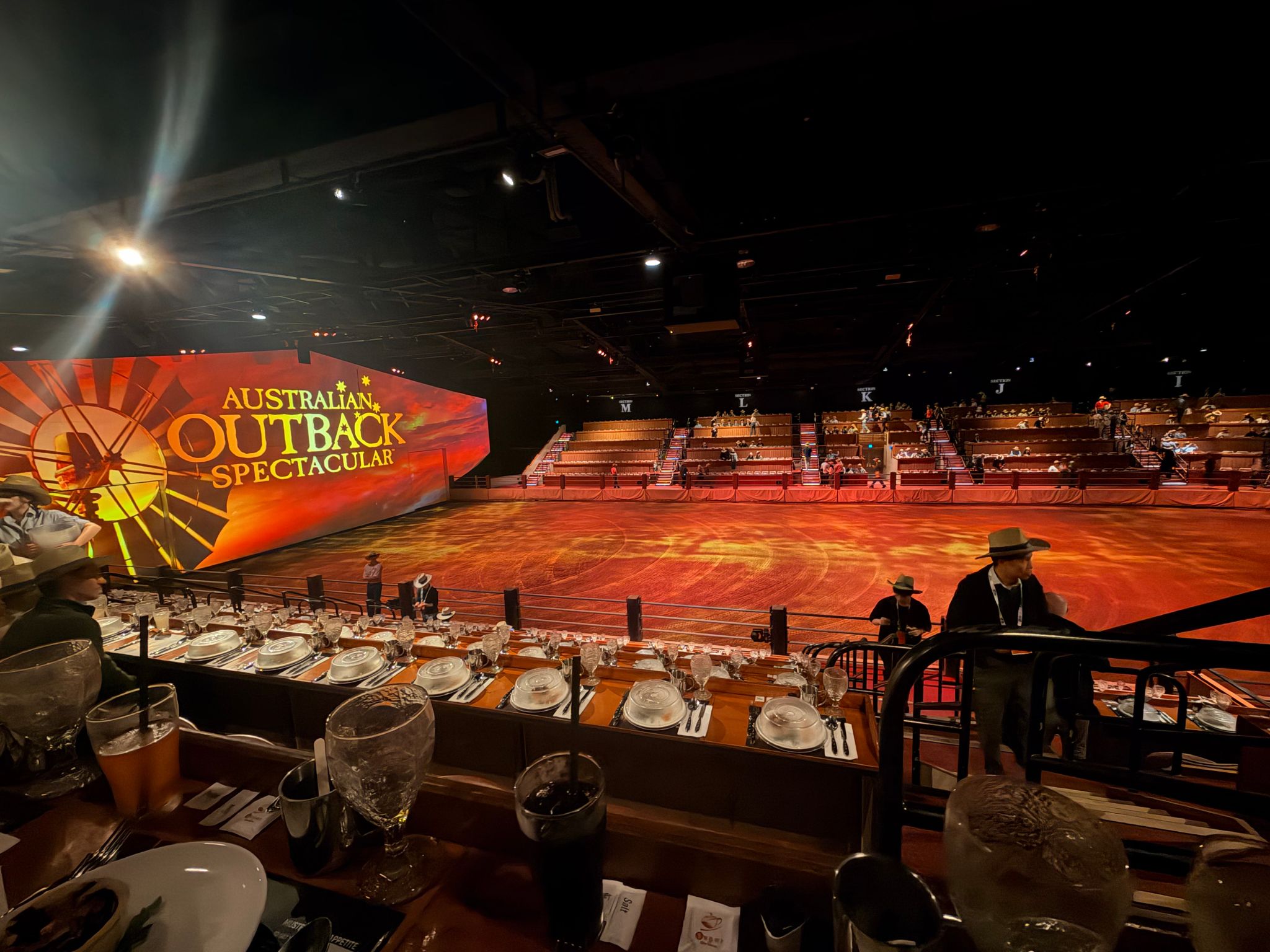 本次行程的文化体验高潮,无疑是参加大会组织的晚宴,并集体观赏了澳洲特有的室内史诗级表演——《澳野奇观》(Australian Outback Spectacular)。这不仅仅是一场秀,更是一次全方位沉浸的澳大利亚内陆(Outback)文化之旅。