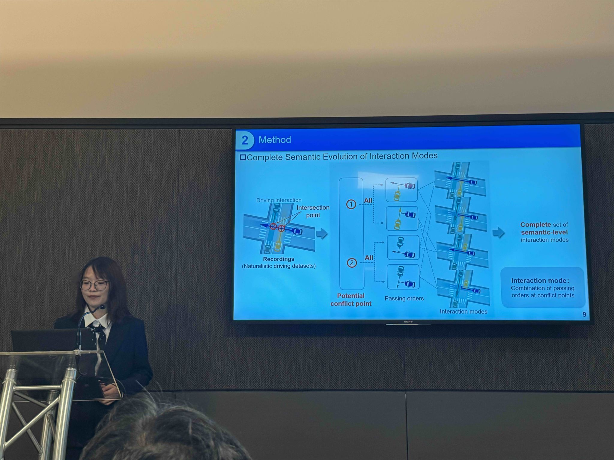 梁浩阳老师和赵晓聪老师进行了题为《An Introduction to OnSite Platform: Open Natural Driving Intelligence Automotive Simulation Test Environment》的汇报,推广宣传我们在推动自动驾驶测试技术方面的工作进展,引发多国学者提问与讨论。课题组博士生蒋溪彦受邀进行论文《Every Scene All at Once: Exhaustive Multi-Agent Interaction generation with Controlled Diffusion Model》的汇报,并与现场各国的学者深入探讨了技术细节与适用效果。