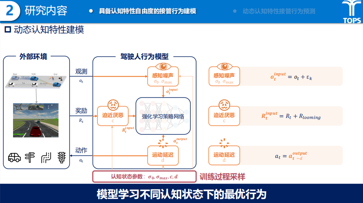 为此,蒋溪彦提出了一种具备认知特性自由度的接管行为预测模型Cog-RL,并设计了结合部分可观测马尔可夫决策过程(POMDP)与强化学习的建模架构。