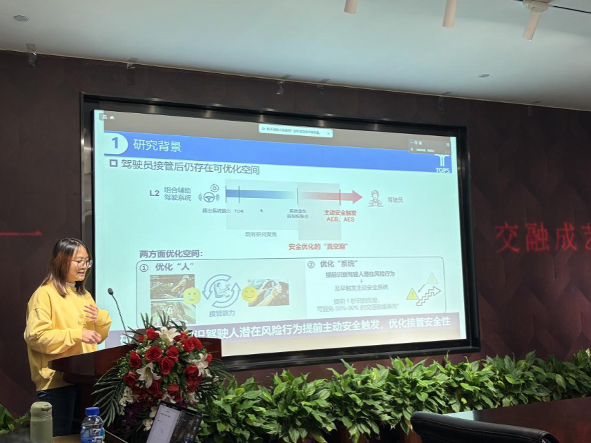 接着蒋溪彦同学从研究背景、研究内容、实验结果、总结与展望四个方面对《考虑动态认知特性的驾驶人接管行为建模》研究展开介绍。