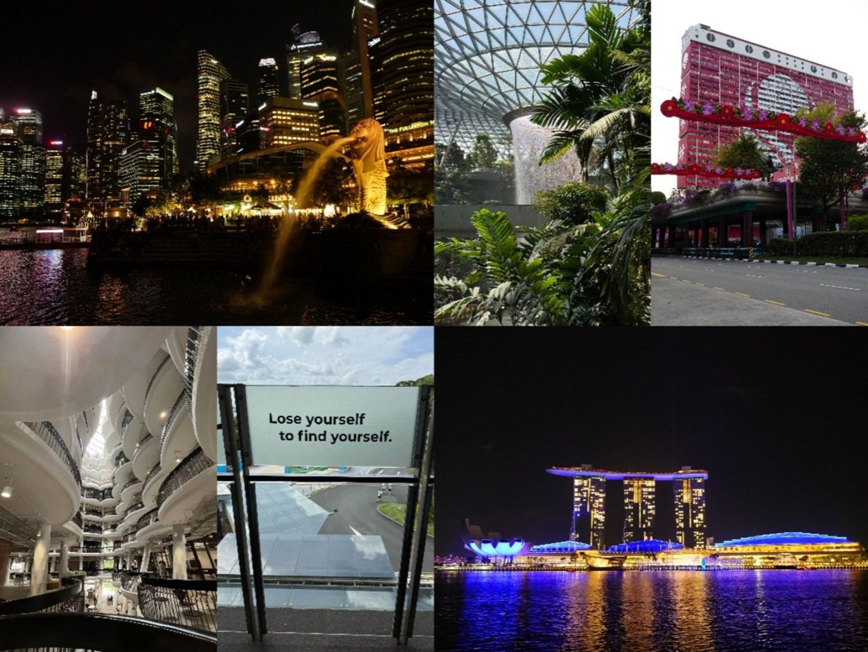 除了学术活动,课题组成员在会议之余也抽时间体验了新加坡的当地文化与风情。新加坡作为东南亚的“花园城市”,以其多元文化、现代化建筑和高效的城市管理闻名于世。这座城市融合了马来、华人、印度和西方文化,形成独特的“狮城”魅力。会议举办地新加坡博览中心位于樟宜机场附近,交通便利,课题组成员利用晚间时间探索周边。首日抵达后,课题组成员漫步在滨海湾金沙酒店(Marina Bay Sands)附近,这座标志性建筑以其天际泳池和花园闻名,夜晚的灯光秀令人叹为观止。