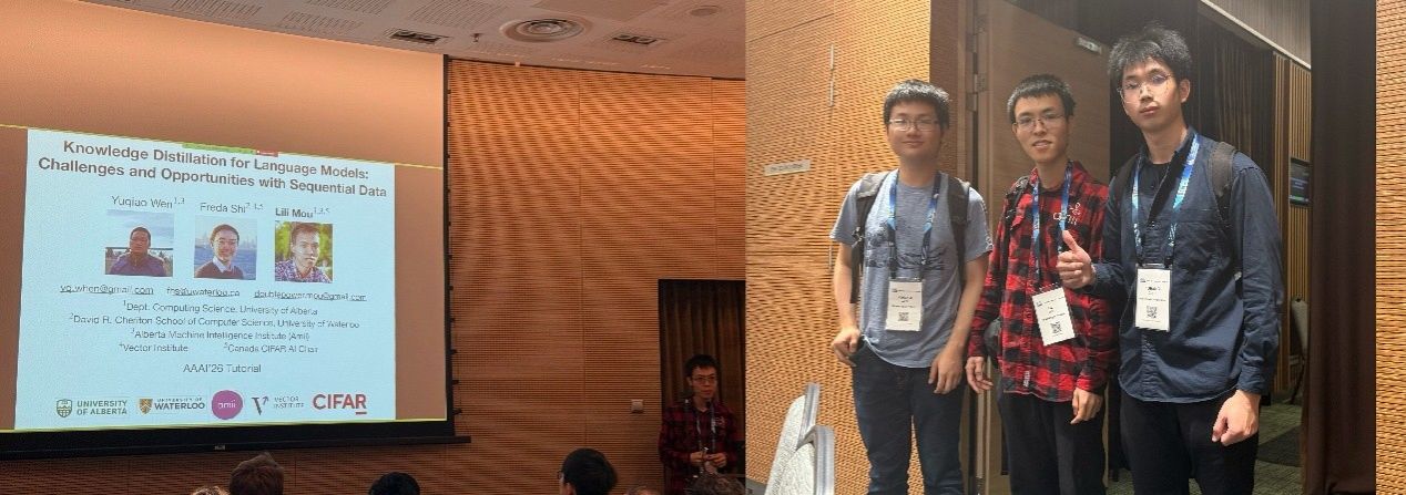 阿尔伯塔大学的Lili Mou教授在其教程《Knowledge Distillation for Language Models: Challenges and Opportunities with Sequential Data》中,详细阐述了知识蒸馏在语言模型中的应用,特别是针对序列数据的挑战和机遇。他介绍了知识蒸馏技术的核心原理,包括教师-学生模型框架,以及如何处理序列依赖性和噪声问题。这与课题组成员的论文研究主题高度契合,从中获得了关于蒸馏效率和泛化生成的新思路。Mou教授还与课题组成员讨论了实际挑战,如计算资源限制和数据隐私等问题,这促使课题组成员进一步反思交通仿真中类似问题的解决方案。