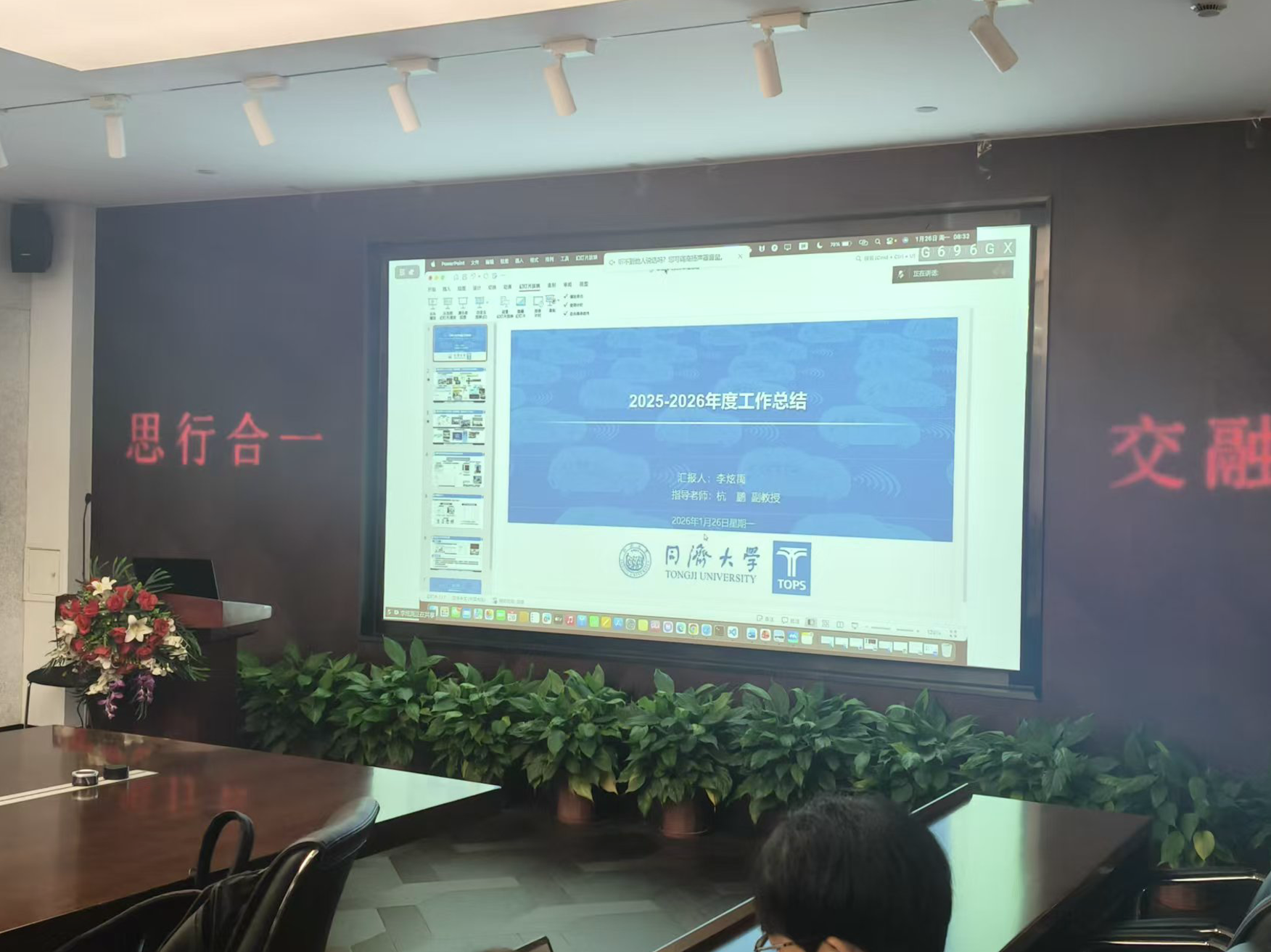 为了总结本学期的新生工作,促进组内同门间的研究交流,加强老师对学生工作的指导与管理,2026年1月26日上午8:30,同济大学交通学院TOPS课题组在通达馆A102就本学期2025级研究生年度总结举行了交流会。与会成员有TOPS课题组全体老师以及学生。