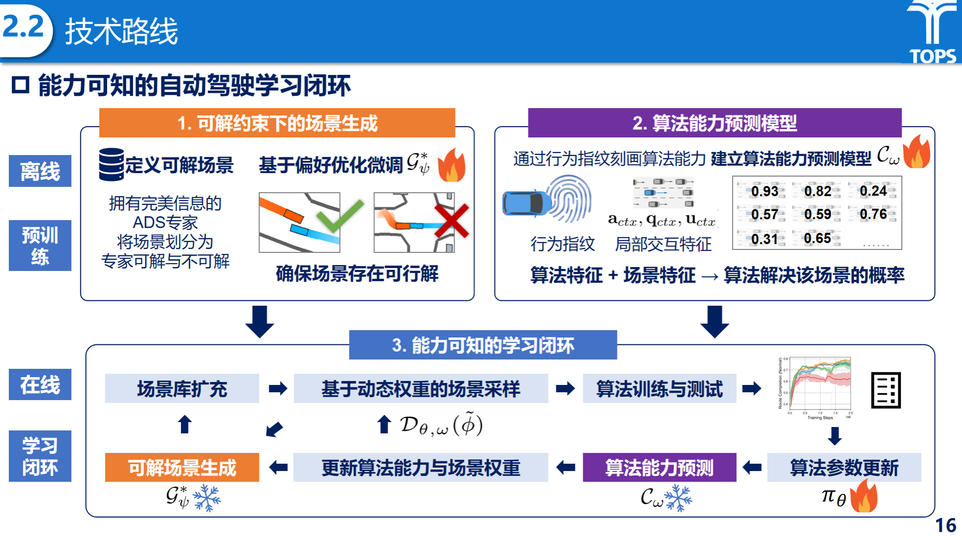 其次,在算法能力建模方面,提出基于行为指纹的能力表征方法,通过提取策略在不同状态下的行为特征,构建多模态能力预测模型,实现对不同自动驾驶算法在具体场景中的成功概率预测,从而建立算法能力与场景特征之间的映射关系。