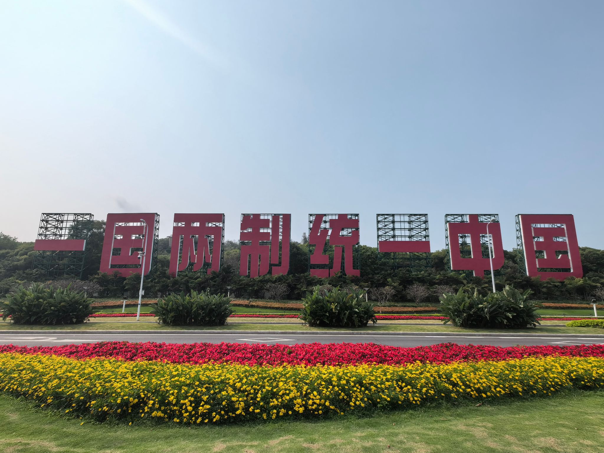 傍晚,我们收拾行李,带着不舍前往机场。去往机场的路途中,我们在路上看到 “一国两制统一中国” 的巨大牌匾,晚风拂过,这八个大字在暮色里愈发醒目,像一盏明灯,照亮了我们返程的路。这八个字,是无数先辈用热血守护的承诺,是两岸同胞共同的心愿,是我们这代人必须扛起的责任,更是是我们青年科研一代理应承担的使命责任与担当。
