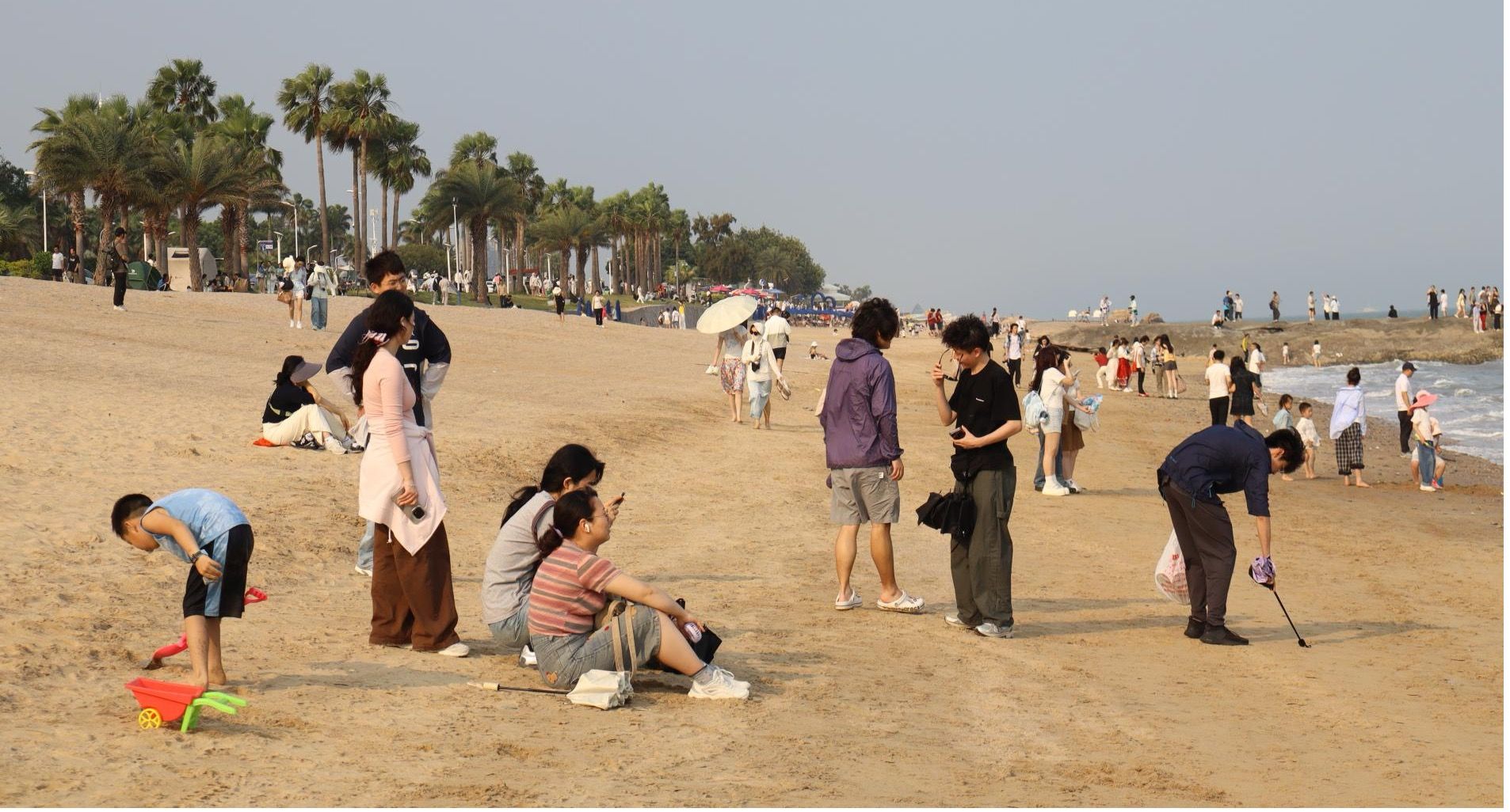 午后,我们乘坐大巴观赏厦门环岛路,并来到最终的目的地椰风寨。大家在椰风寨沙滩踏沙而行,体会浪漫阳光下海天一色的舒适,笑声随风飘扬。